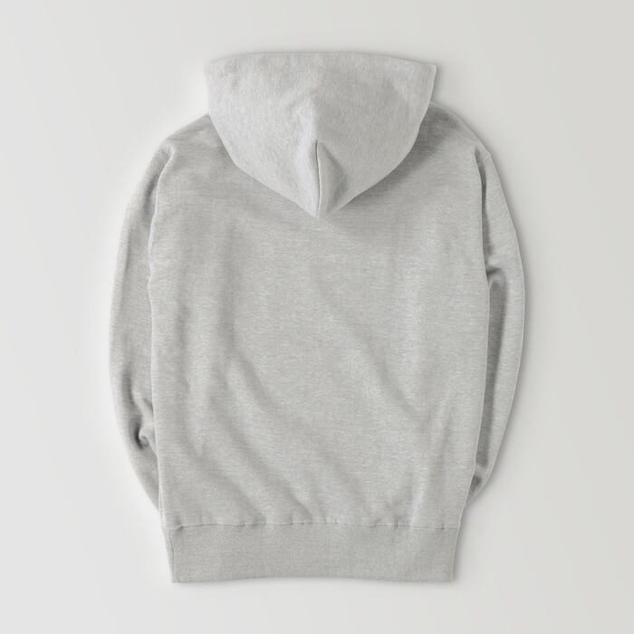 前面にポケットが付かないシンプルなデザインで、しっかりとした生地厚のパーカーです。